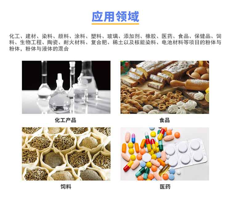 適用物料: 固-固(即粉體與粉體)、固-漿(即粉體與膠漿液)的混合,特別適應(yīng)粘稠的物料混合。