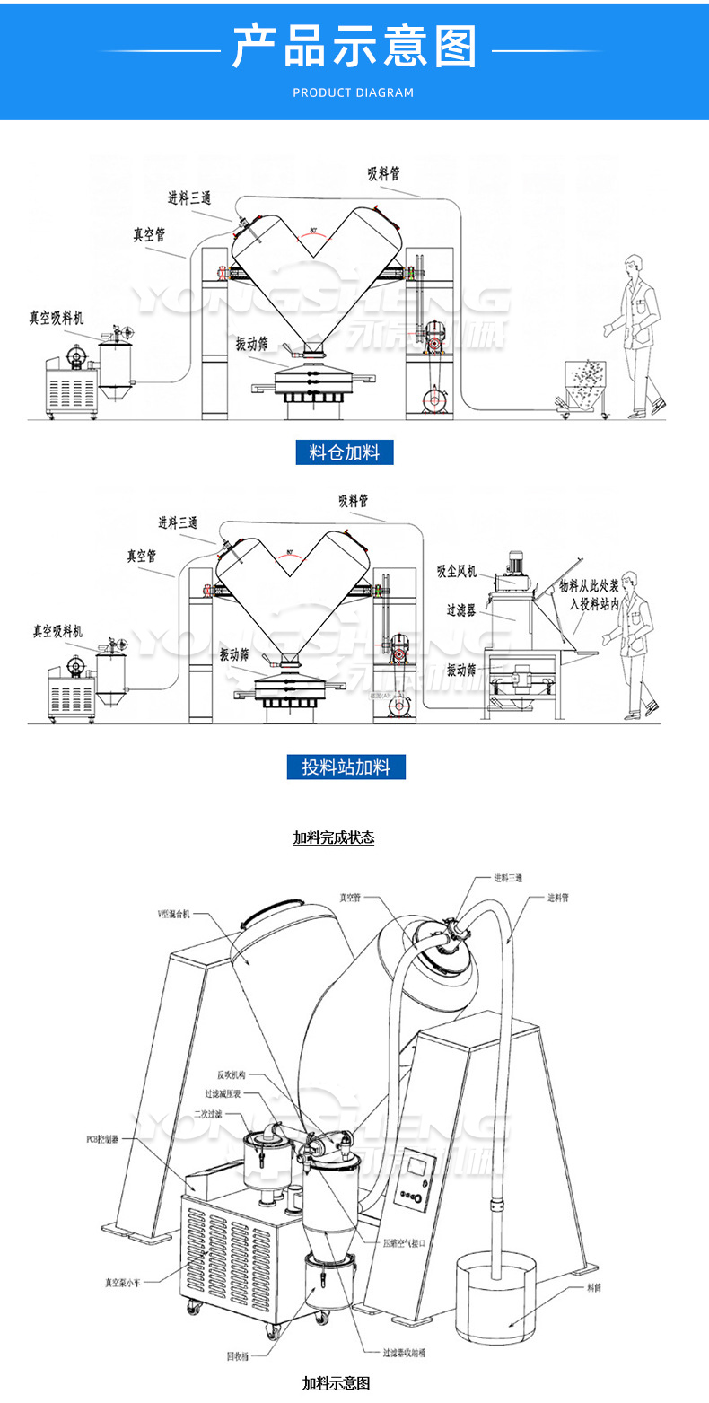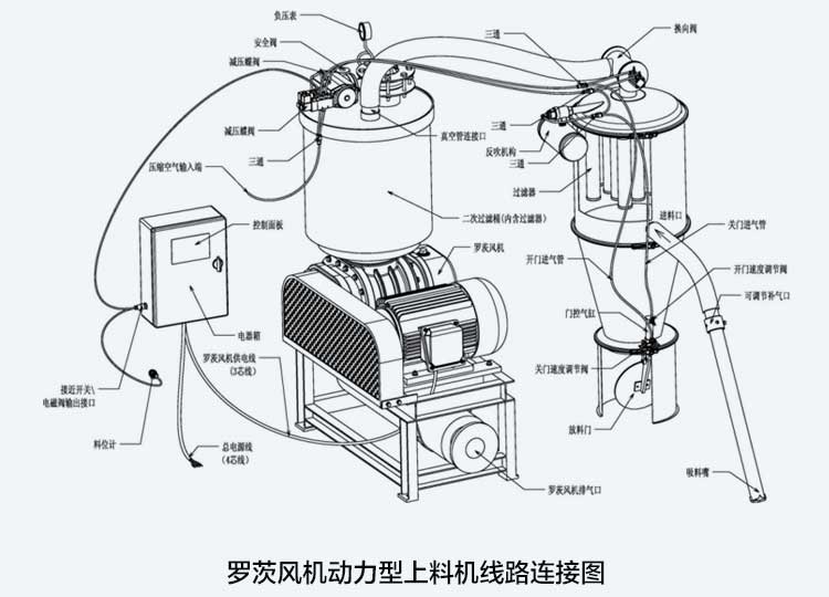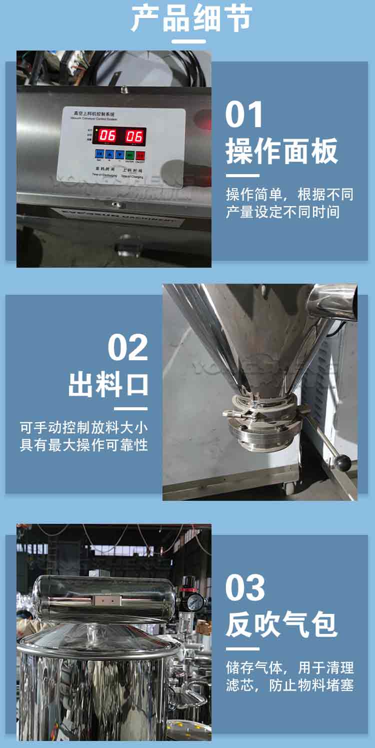 一款專門連接混合機上料機的真空加料機,混合機真空加料機是一種粉狀料、粒狀料、粉粒混合料的真空輸送設備。