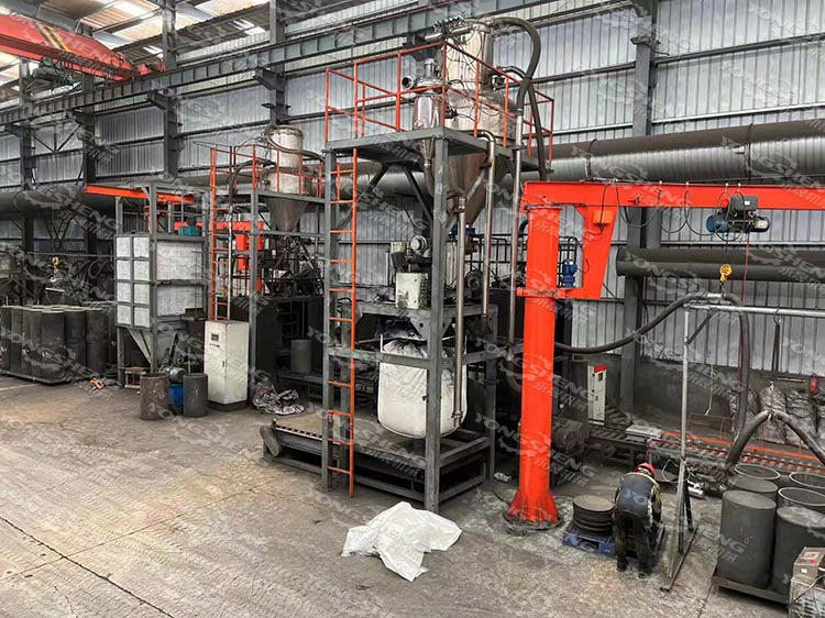 石墨坩堝填充根據裝在容器下面的位置傳感器給出的信號完成充填、擠壓、計量及升降等工作,在充填過程中,專用的脫氣裝置可以將細粉中所含的空氣排出,可以保證出料口的物料以團簇狀態充填到坩堝中,粉塵將大幅度減少,實現高密度填充,特別適用于填充超細石墨粉。